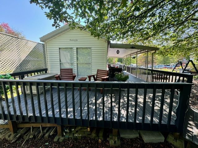 1999 Breckenridge non loft Park Model that sits on a well maintained lot in the Beautiful Place section of the campgrounds. This turn key unit features an aluminum awning, wrap around deck, shed, and a partial view of the lake. Also included in the sale are the golf cart, indoor and outdoor furniture, grill, swing, and other miscellaneous items.
