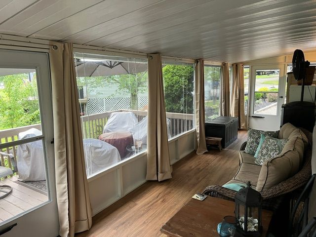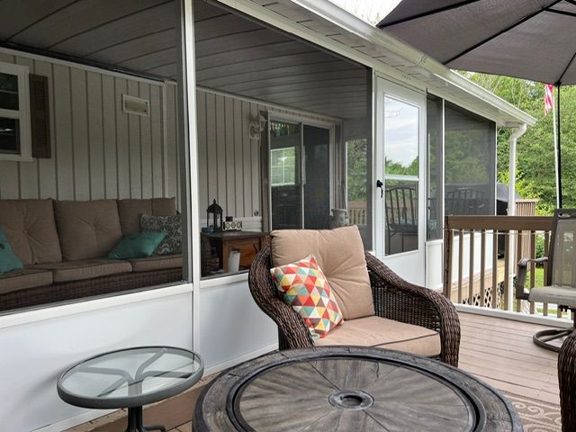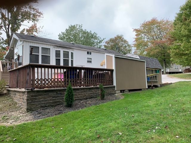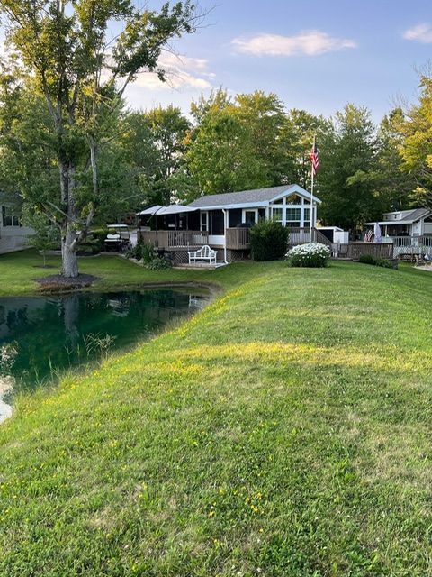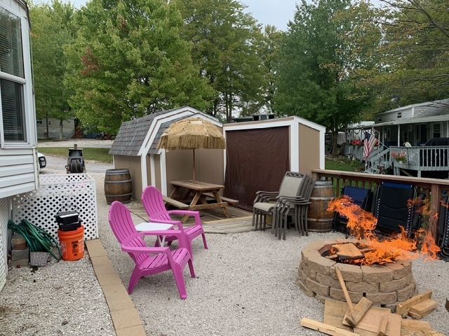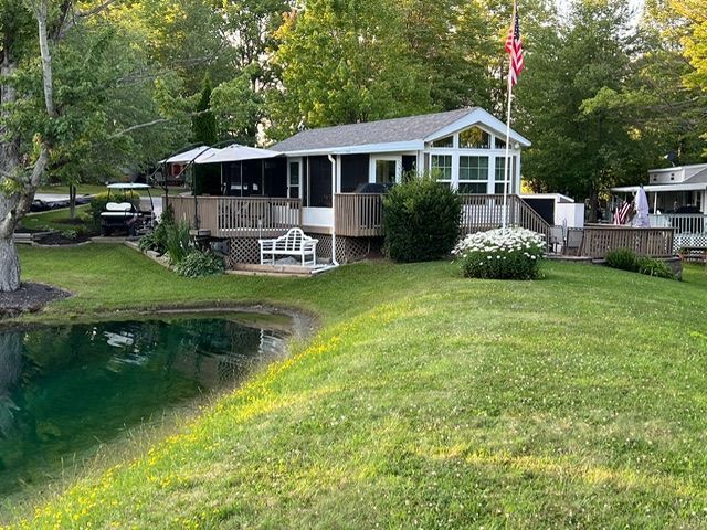 Beautifully maintained and upgraded 1999 Sako Hampton park model for sale in the Beautiful Place section of the campgrounds. This unit sits right on one of our spring fed lakes so you can watch the sun rise and set over the water. It also features a three seasons room, tankless hot water heater, new gas stove, 36” refrigerator, newer roof, hidden second bunk room, and much more. Also included is the shed and golf cart along with all indoor and outdoor furniture.