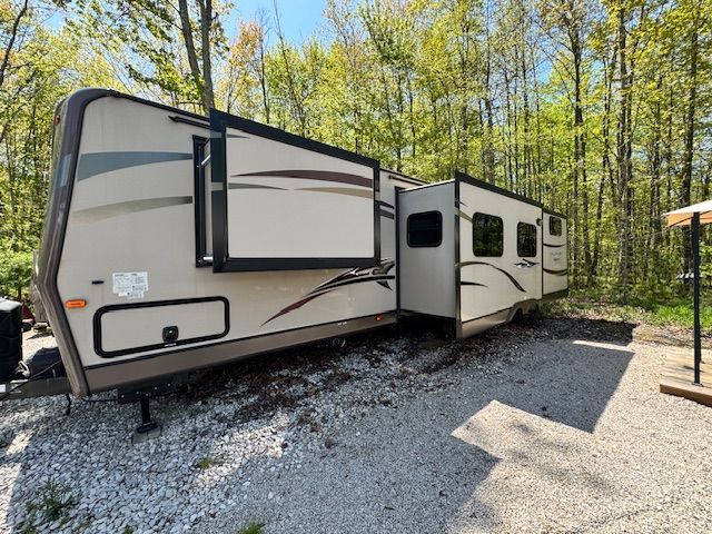 2015 Rockwood Signature Ultra Lite model 8327 SS. Very well kept bunkhouse camper with 5 slides, upgraded fridge, mini fridge outside, and tons of storage.