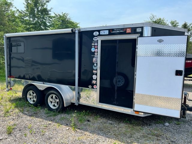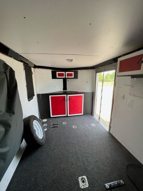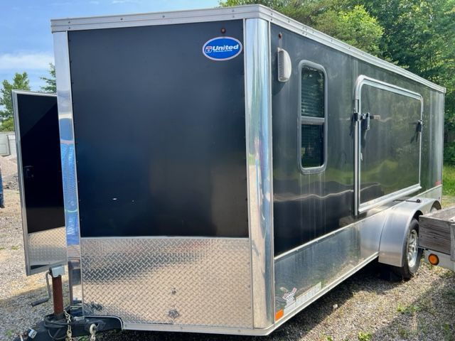 Custom toy hauler trailer for sale. This is a 2015 Unit XLMTV. It features an awning, custom blinds, bump out with mattress pad, spare tire, and plenty of room to store your toys.