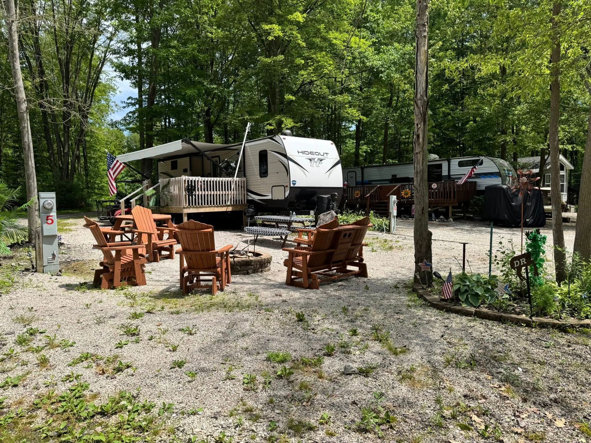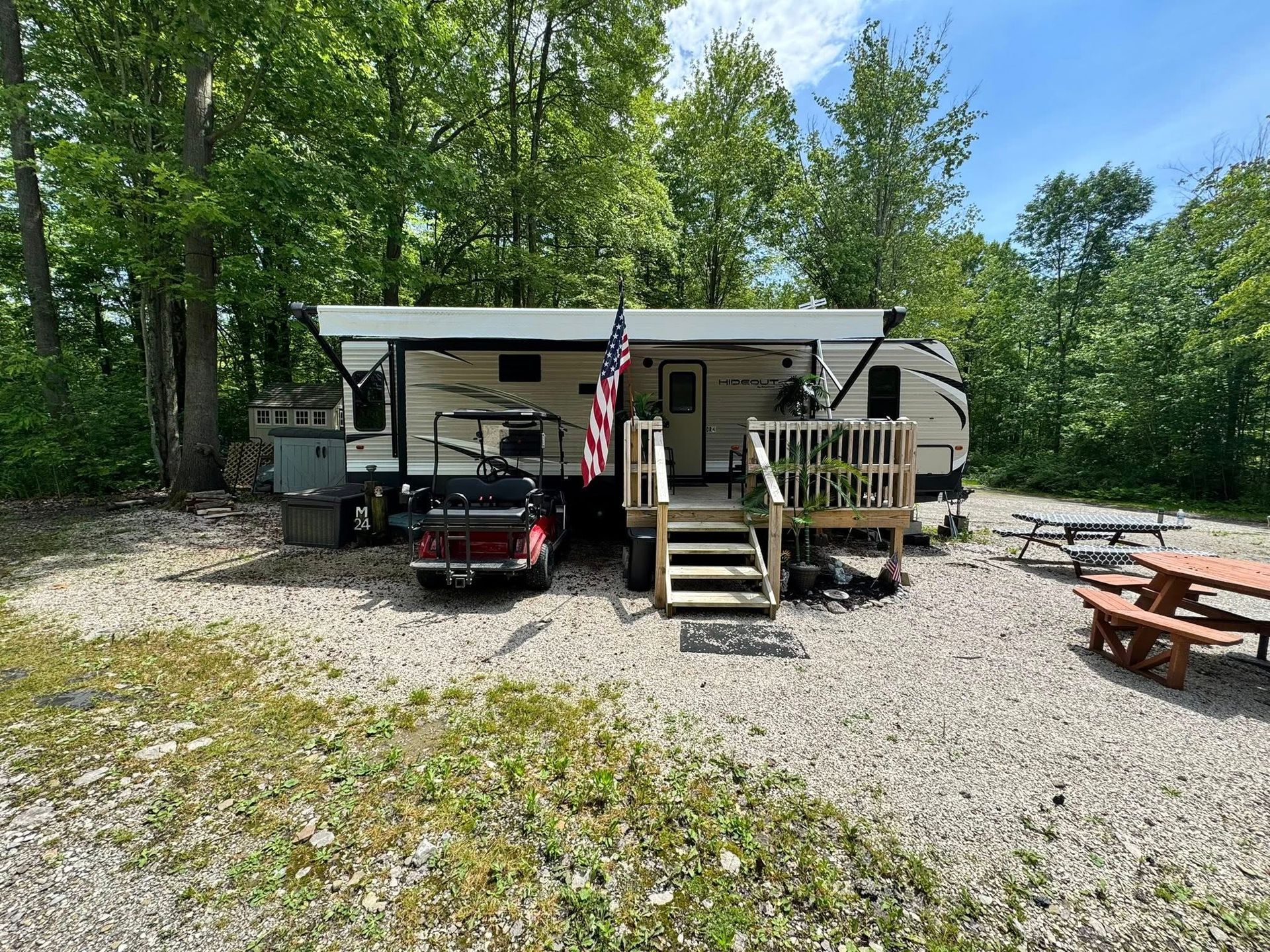 2019 Keystone Hideout model 30RLDS now for sale in the Deer Run section of the campgrounds. This unit sits on a spacious low maintenance lot ready for you to move in! Included in the sale are the deck, storage shed, fire pit, and tv.