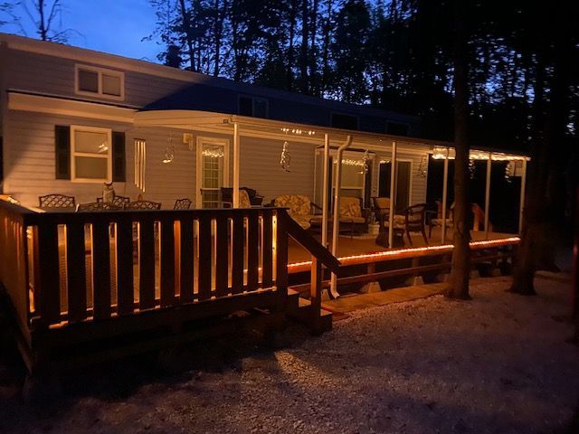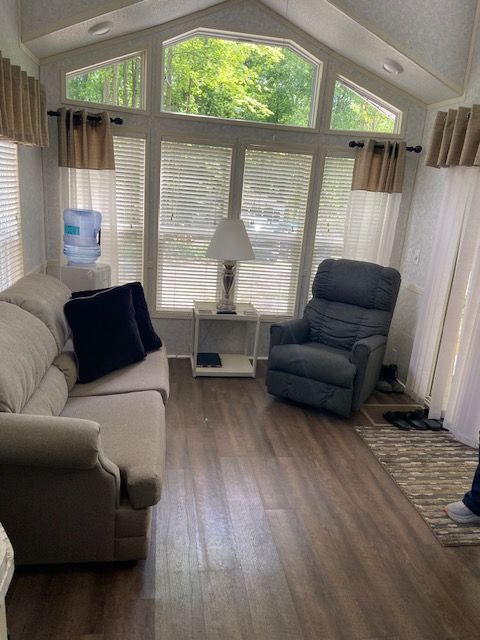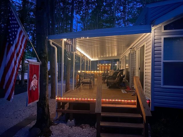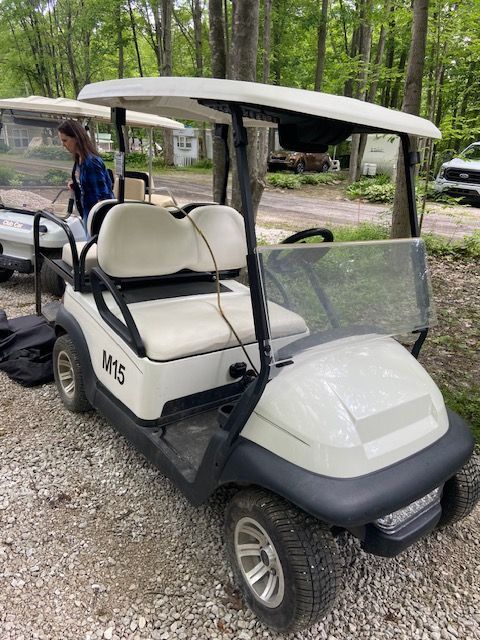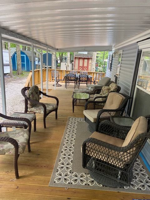 Beautiful turn key, everything ready for camping season unit for sale in the M section of the campgrounds. This unit sits close to both of the pavilions for bands and events and a swimming lake. Included in the sale is deck, aluminum awning, assorted deck furniture, wood and plastic storage sheds, wood racks, large appliances, mounted tvs, 2014 electric club car, and other miscellaneous items.