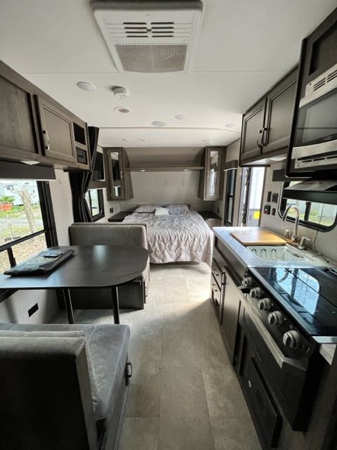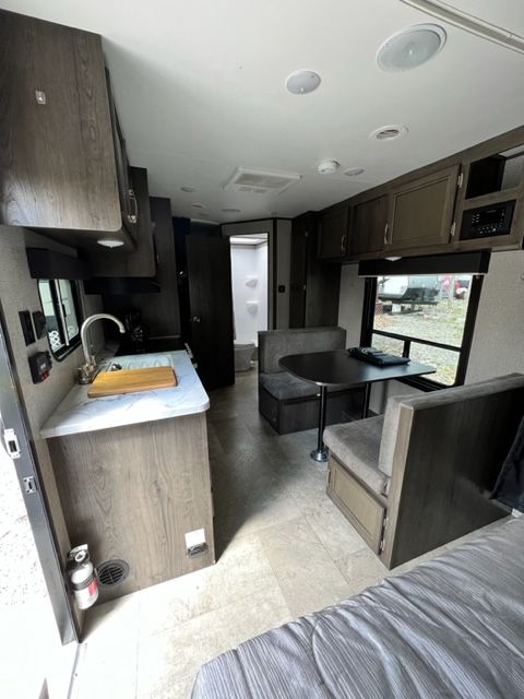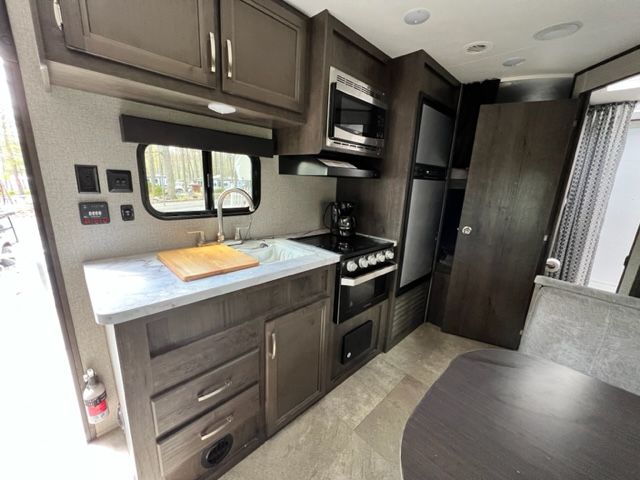2020 Jayco JayFlight SLX 224BHS for sale on a low maintenance corner lot in the W section of the campgrounds. Included in the sale is a 7 year transferable bumper to hitch extended warranty, smart TV, coffee maker, and fire pit.