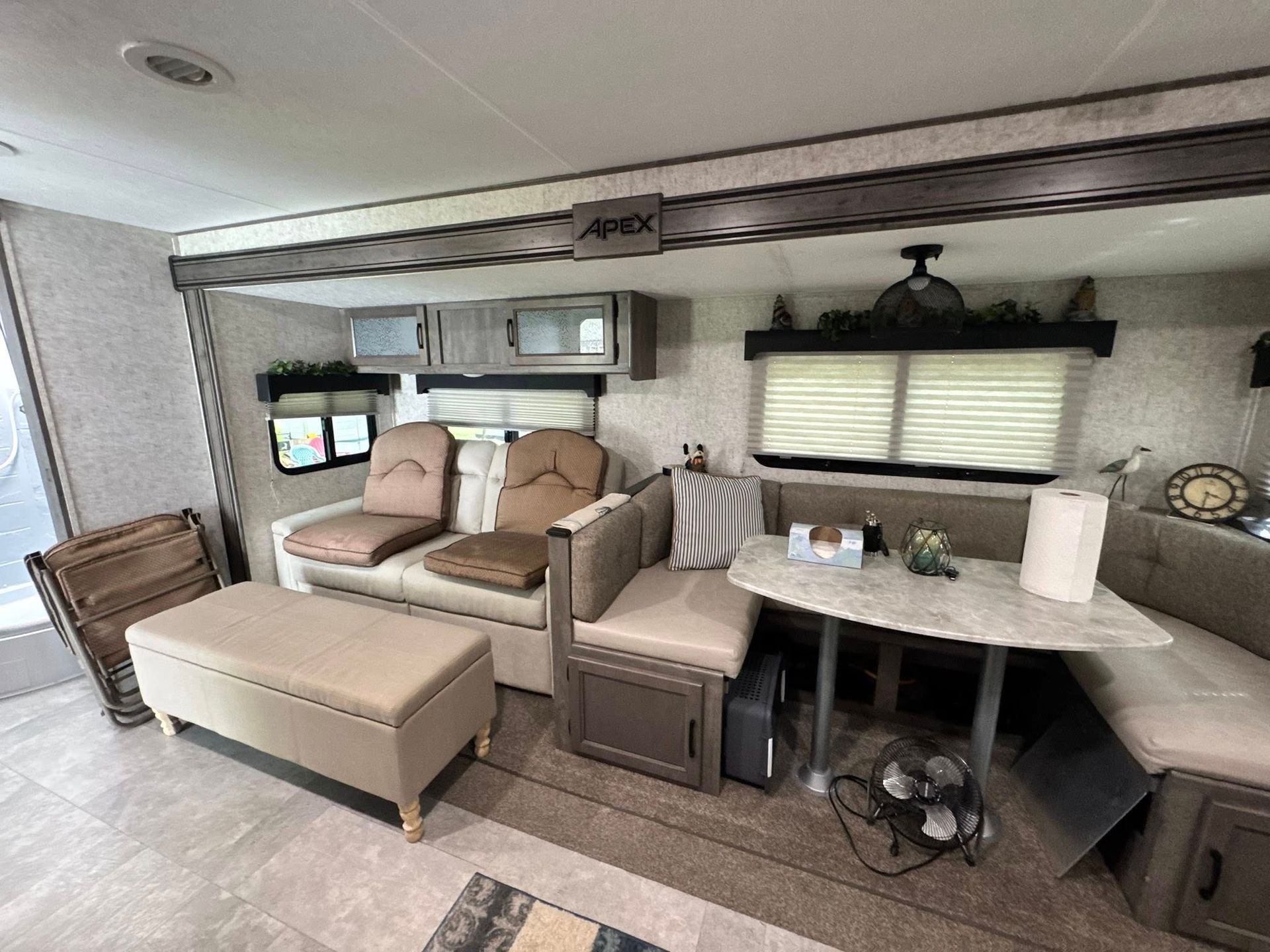 2021 Coachmen Apex 265RBSS now for sale in the B section of the campgrounds. This well maintained, beautifully landscaped unit features a Dura-Bilt aluminum awning, deck, and storage shed. It also sits close to one of the playgrounds.