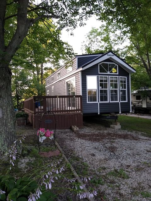This unit sits permanently in our Beautiful palace section of the campgrounds with a lake view. It also has a deck and shed on the lot and comes with a brand new a/c unit.