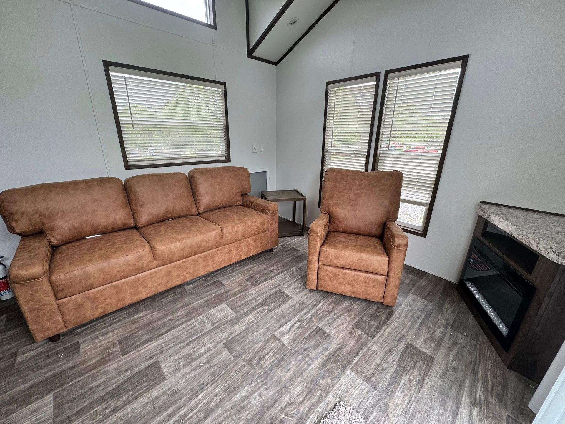 This unit is features a fireplace, metal roof, large sleeper sofa, loft for extra sleeping space or storage, and FREE lot rent for the first year.